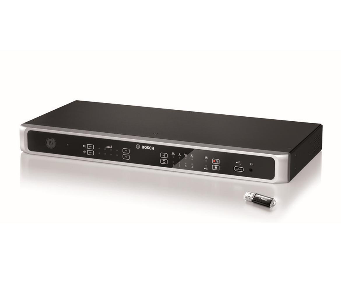 La unidad de control es el principal componente del Sistema de debate digital CCS 1000. Proporciona alimentación de CC a todos los dispositivos de debate conectados y permite supervisar y controlar el sistema de debate. El control mediante botón táctil permite configurar y manejar la unidad fácilmente, mientras que los indicadores LED intuitivos ofrecen una indicación precisa de la configuración del sistema. Gracias a las conexiones ubicadas de fácil acceso en la parte trasera de la unidad se pueden conectar equipos periféricos al sistema de debate, como equipos de audio y dispositivos Bosch HD Conference Domes. El control intuitivo mediante explorador web permite ver y modificar fácilmente la configuración básica y avanzada del sistema, según se necesite.