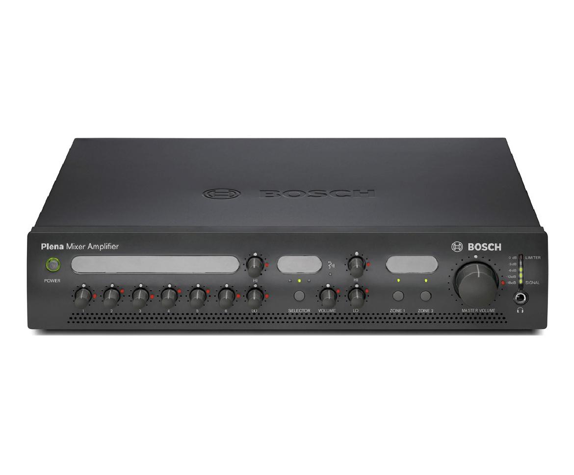 Estos amplificadores mezcladores Plena son unidades de megafonía profesionales de alto rendimiento con funciones de vanguardia. Son equipos muy fáciles de usar, muy sencillos por fuera para el usuario y sofisticados por dentro. Obtener una llamada nítida o música clara es tan sencillo como encender la radio. El amplificador también es sorprendentemente asequible, y no es necesario sacrificar características como la reducción, la prioridad y la flexibilidad.